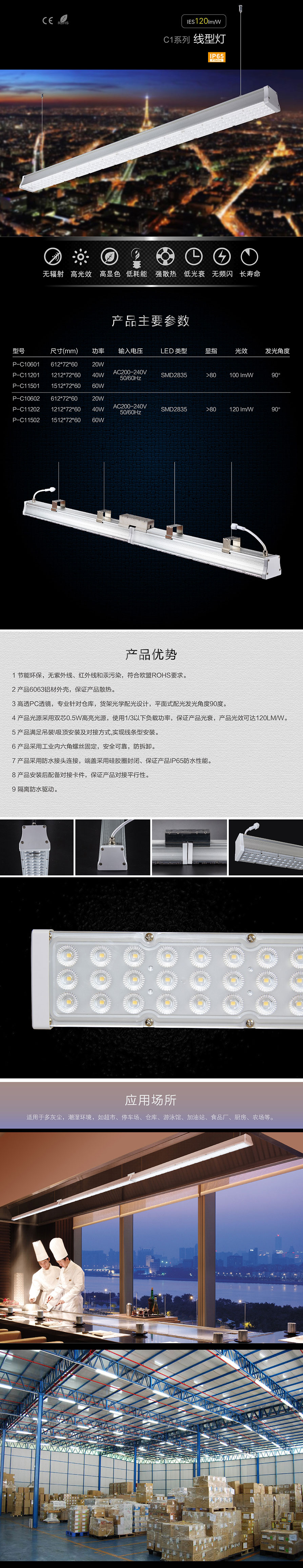 - 產(chǎn)品名稱: C1系列 LED線型燈 120LM/W 100LM/W