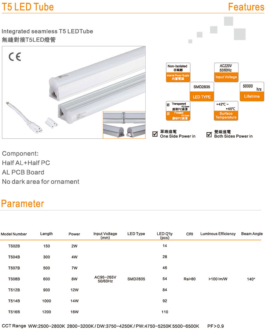- 產(chǎn)品名稱: T5 CE認(rèn)證 一體化無影對接 LED燈管