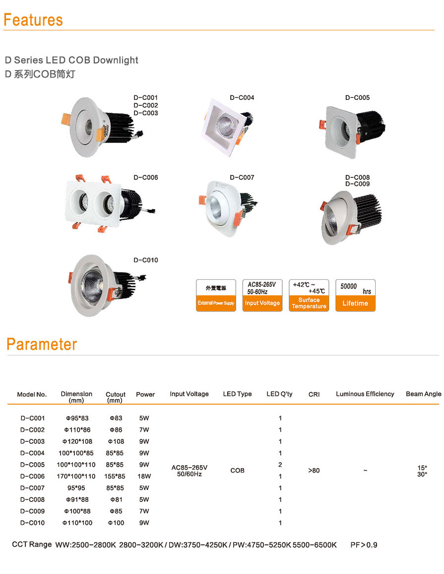 產(chǎn)品名稱(chēng): D系列COB聚光LED筒燈