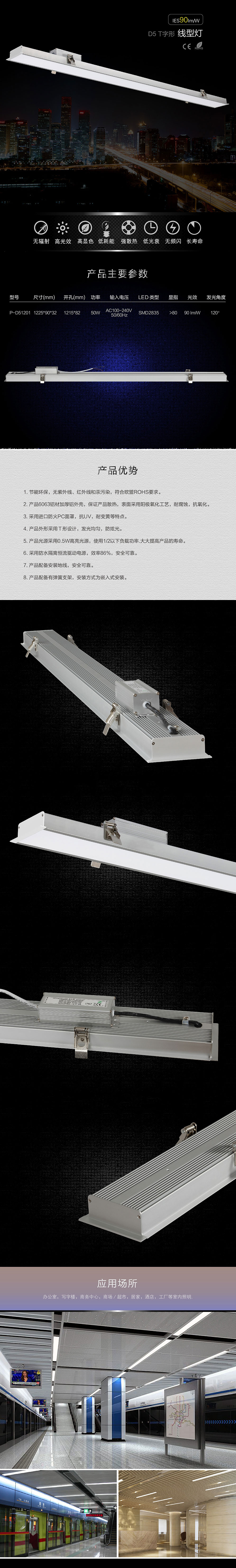 - 產(chǎn)品名稱: D5 T形 LED線型燈 90LM/W