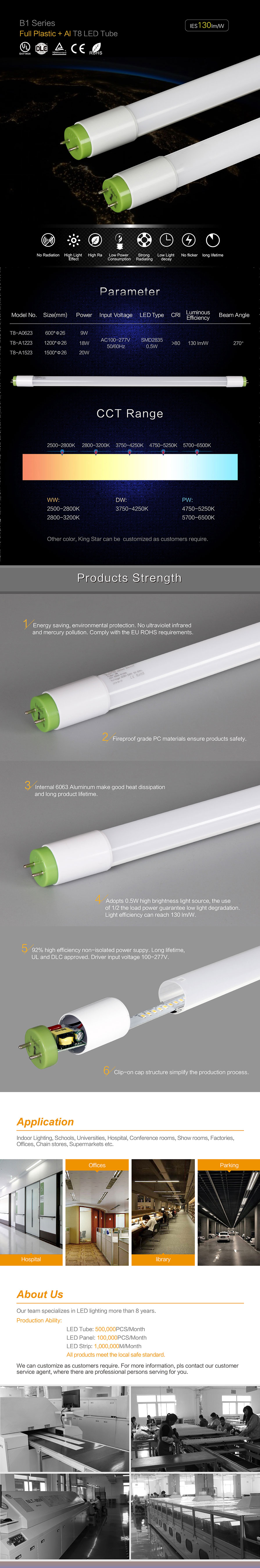 - Product Name: B1 Series Full plastic with aluminum inside TUV+SAA LED Tube