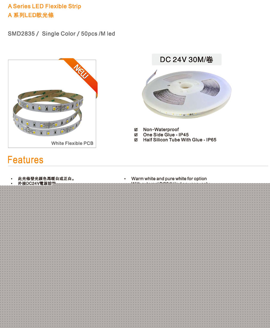 - Product Name: A Series LED Flexble Strip,SMD2835,Single Color,50Lamp/M